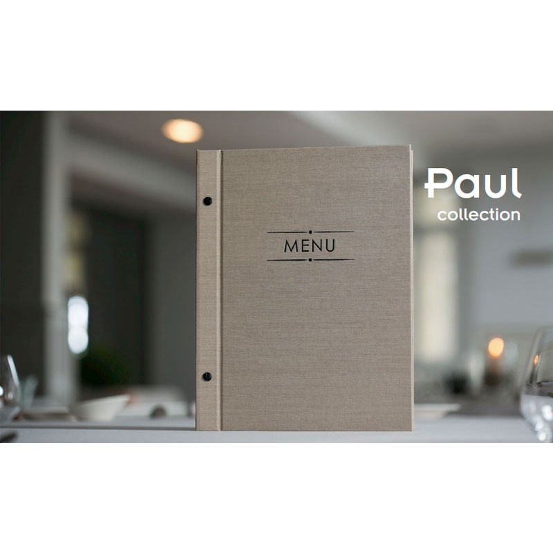 Portamenús colección Paul fabricados en Telflex con termosellado en color negro y fundas de PVC con atornillado exterior. Ideal para hostelería y restauración. Tamaño A4: 25,5x32 cm.