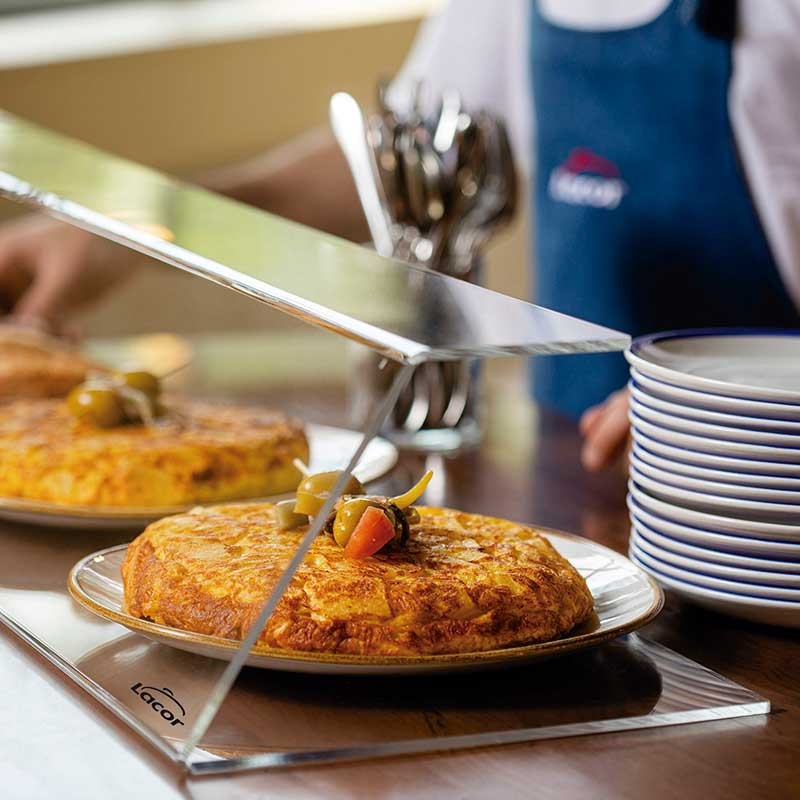 Protector de acrílico transparente de 17 cm de altura y varios largos a elegir ideal para proteger alimentos, pinchos y tapas en barras de bar y restaurantes.