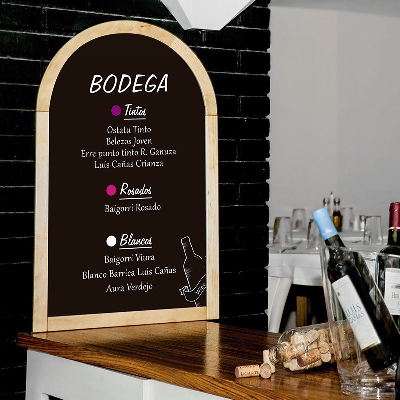 Pizarra semi-circulo de 50x80 cm diseñada para ser colocada en la pared y escribir sobre ella con tiza o rotulador Lacor. Ideal para personalizar menús en hostelería y restauración.