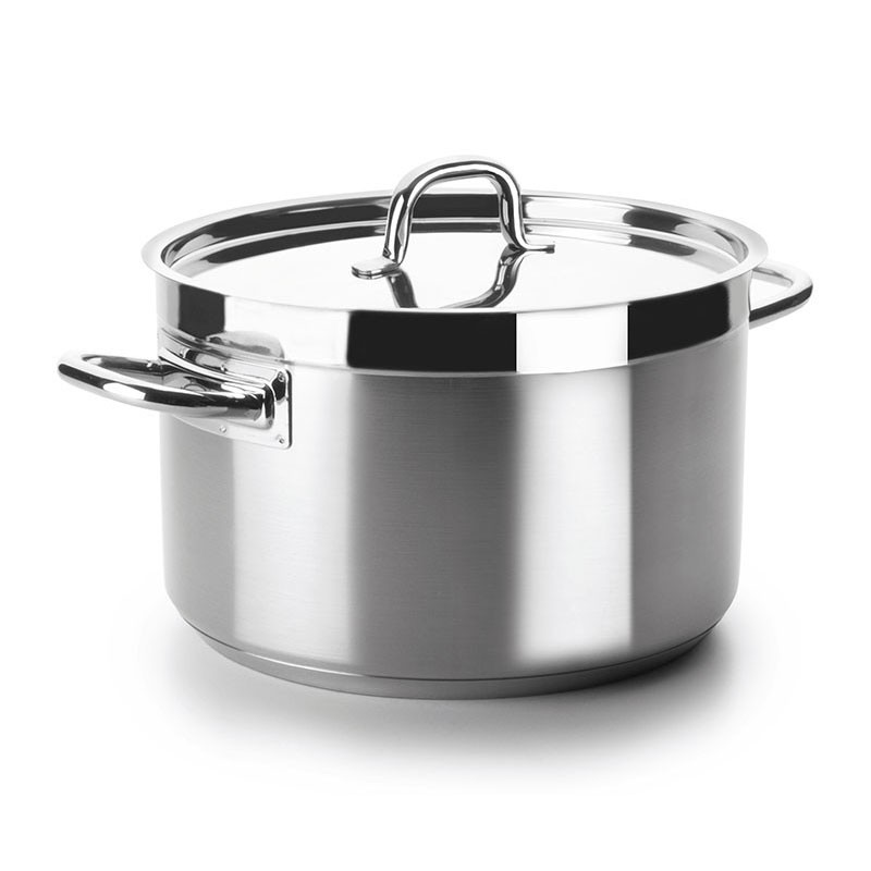Ampliar Cacerola profesional alta sin tapa modelo Chef Luxe fabricada en acero inoxidable 18/10 con fondo termodifusor sándwich apto para placas de inducción, eléctricas, vitrocerámicas y cocinas de gas.