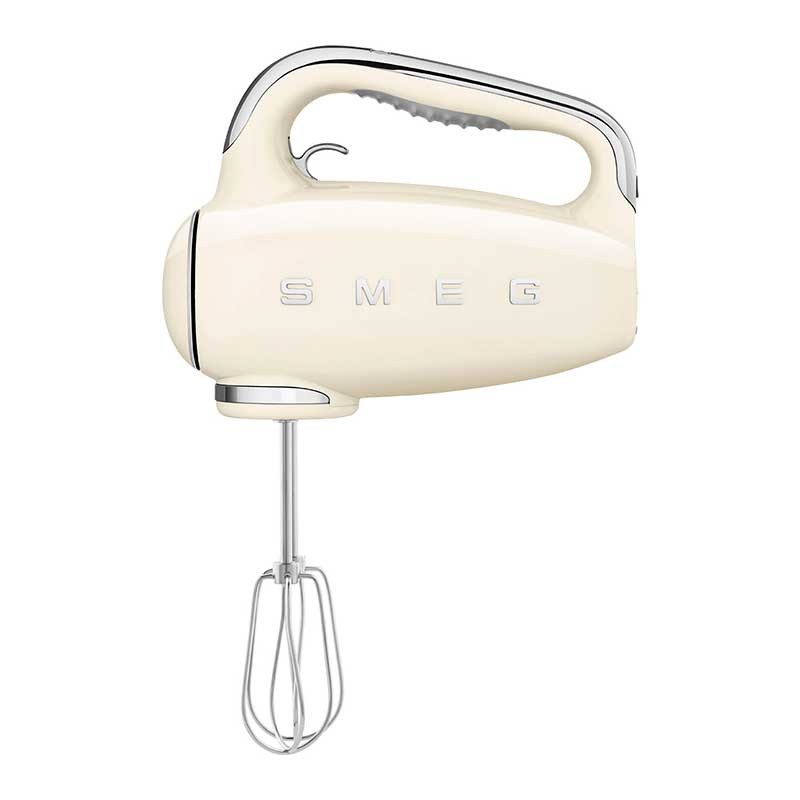Batidora eléctrica de varillas Smeg 50's Style acabado crema brillo con 250 W de potencia, 9 niveles de velocidad y función turbo.