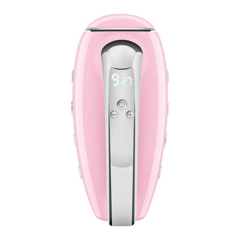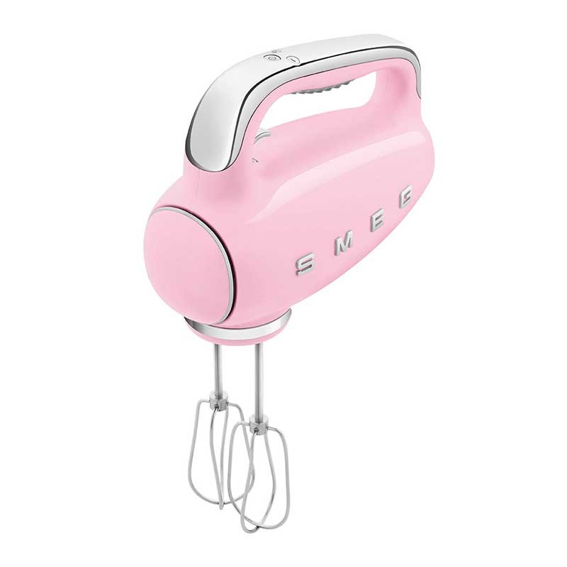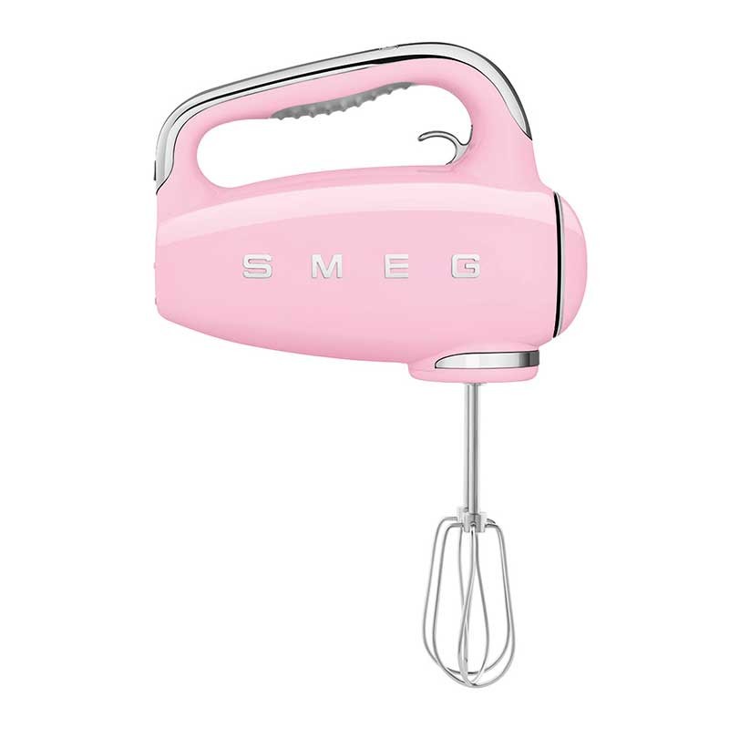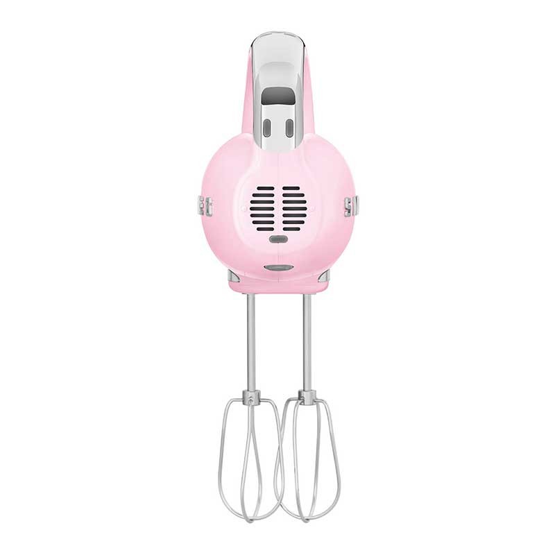 Batidora eléctrica de varillas Smeg 50's Style acabado rosa brillo con 250 W de potencia, 9 niveles de velocidad y función turbo.