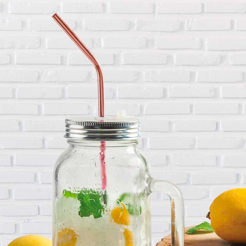 Set de 4 pajitas de acero inoxidable de máxima calidad con un elegante acabado en color cobre, mas un cepillo para facilitar su limpieza.