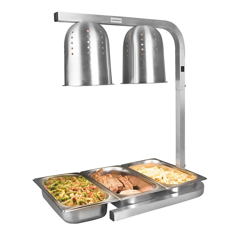 Lámpara de calentamiento de 2 focos de infrarrojos de 550 W fabricada en aluminio para mantener los platos calientes en cocinas profesionales, hostelería y buffets.