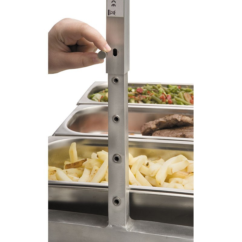Fabricada en aluminio de gran calidad y ligereza, y diseñada especialmente para los profesionales de la cocina, tanto en hostelería, como restauración, buffets y grandes celebraciones y eventos, donde mantener la temperatura de los alimentos que se van a servir a los comensales es de suma importancia.