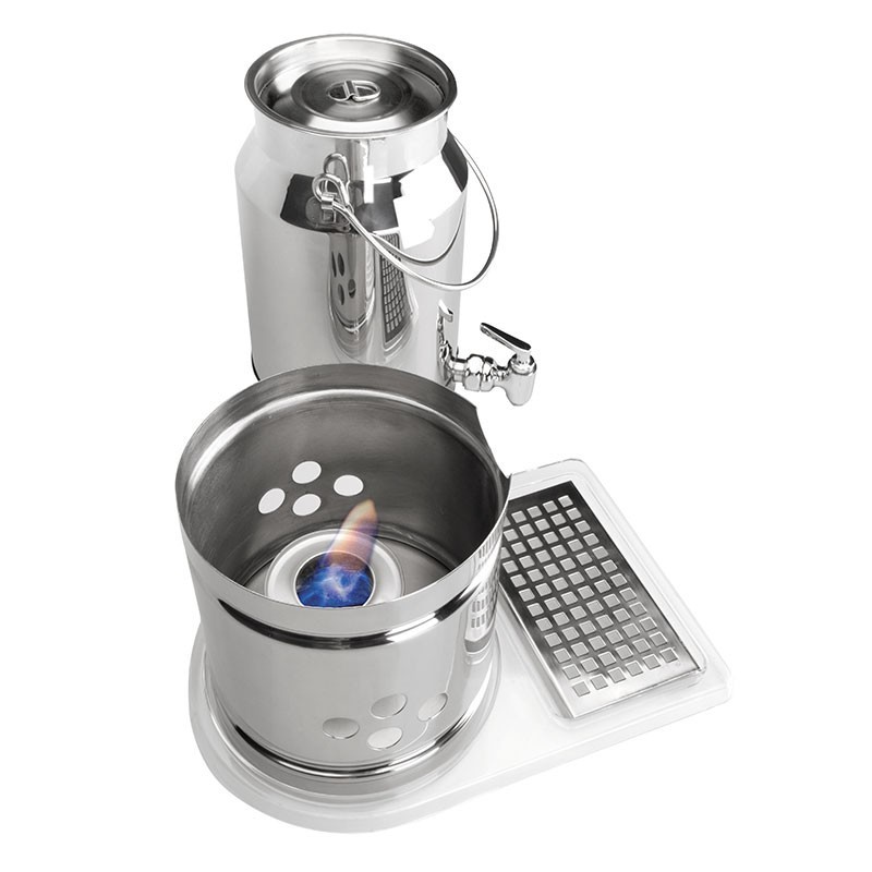 Bajo el depósito principal tiene un hueco habilitado para poder poner una lata con combustible para el calentamiento de la leche, o hielo si lo que desea es obtener una leche más fría.