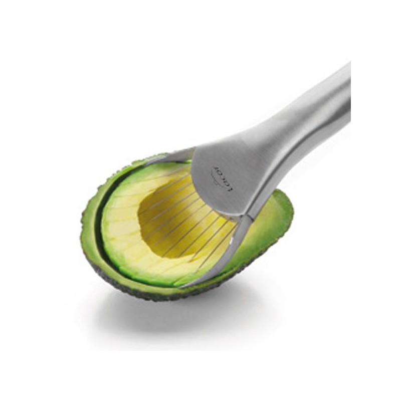 Laminador y deshuesador de aguacates fabricado en acero inoxidable de gran calidad y excelente resistencia a la corrosión. Largo: 24 cm.