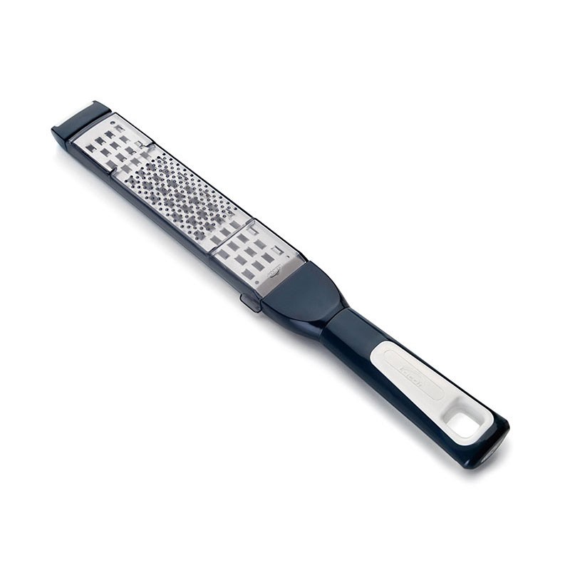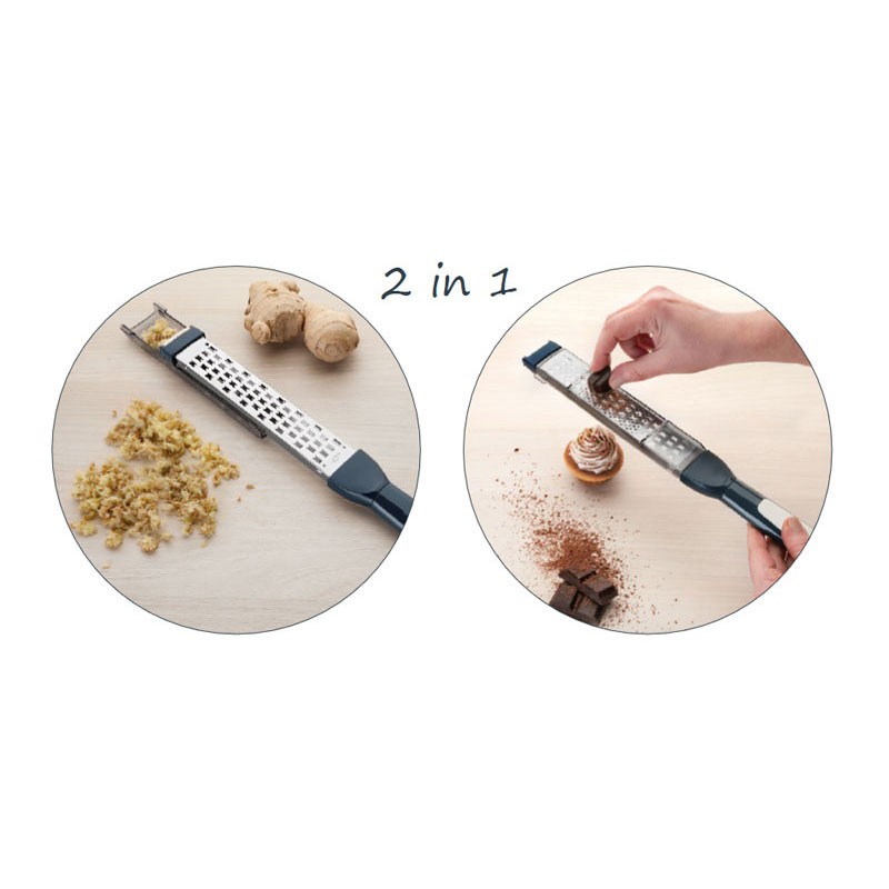 Rallador de mano 2 en 1 para cocina con una cara para un rallado fino y otra cara para rallar más grueso. Largo: 31 cm.