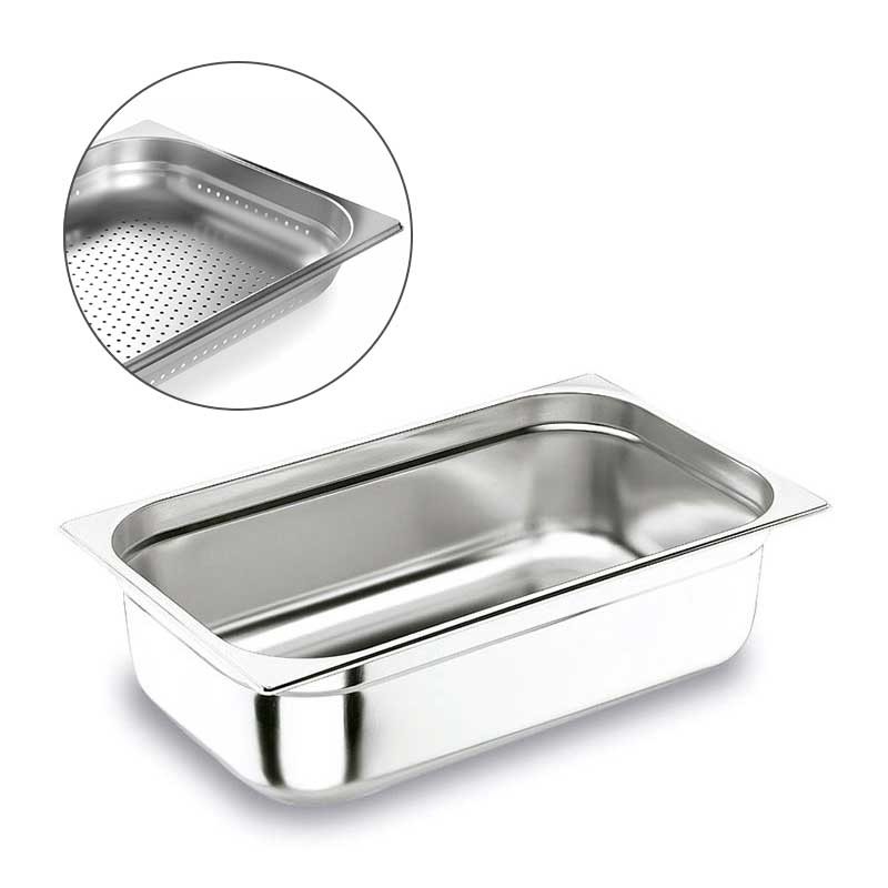 Cubeta o bandeja perforada tamaño GN 1/1 de 530x325 mm para cocinas profesionales fabricada en acero inoxidable Serie Aisi 200.