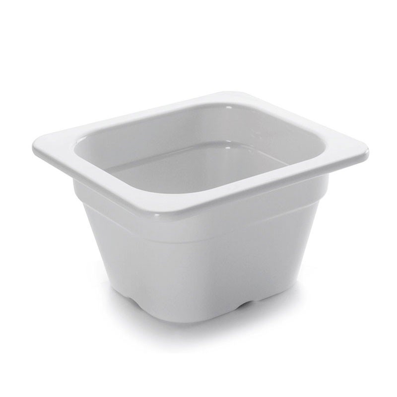 Cubeta tamaño GN 1/6 de 176x162 mm para cocinas profesionales fabricada en resina sintética blanca de alta calidad y resistencia.