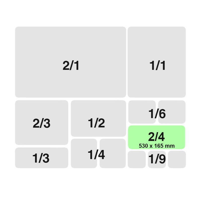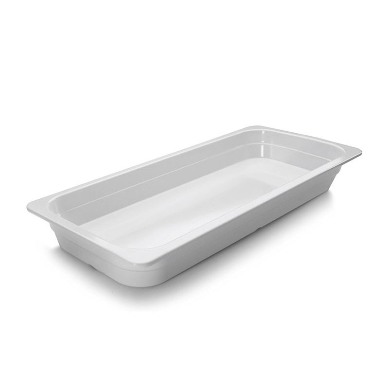 Cubeta tamaño GN 2/4 de 530x165 mm para cocinas profesionales fabricada en resina sintética blanca de alta calidad y resistencia.