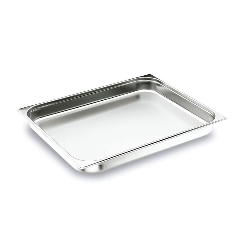 Cubeta o bandeja tamaño GN 2/1 de 530x650 mm para cocinas profesionales fabricada en acero inoxidable 18/10.