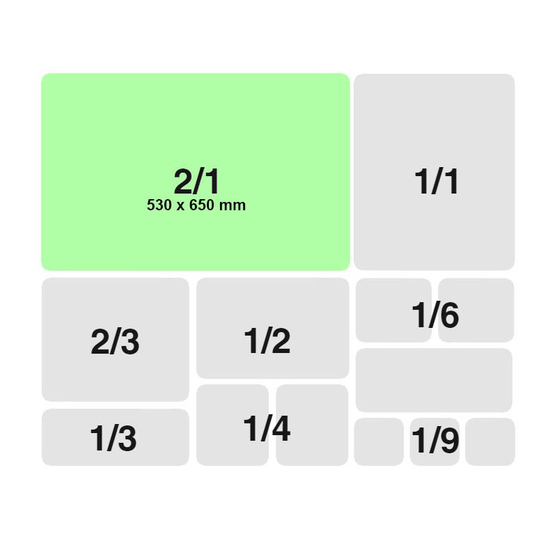 Este formato estándar preestablecido permite la organización y optimización del espacio en equipos de cocina tales como cámaras frigoríficas, hornos, estanterías, carros porta-bandejas, carros y cubetas de limpieza para lavavajillas industriales, equipos de transporte térmico para buffets, etc.