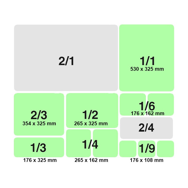 Este formato estándar preestablecido permite la organización y optimización del espacio en equipos de cocina tales como cámaras frigoríficas, hornos, estanterías, carros porta-bandejas, carros y cubetas de limpieza para lavavajillas industriales, equipos de transporte térmico para buffets, etc.