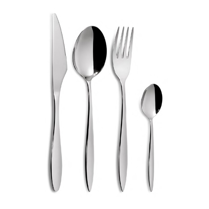 Set de 24 cubiertos Comas Serie Mia fabricados en acero inoxidable 18% cromo, libre de níquel y 3 mm de espesor.