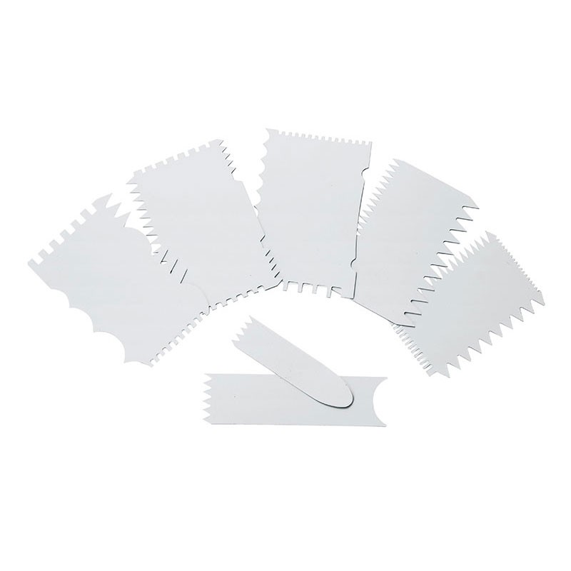 Ampliar Juego de peines compuesto de 7 piezas para decoración en repostería, y fabricado en polipropileno de uso alimentario libre de bisfenol.