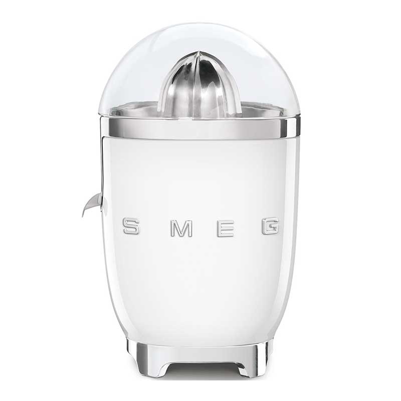 El exprimidor de cítricos CJF11 combina un diseño elegante y un rendimiento superior. Prepárate un delicioso zumo de frutas en un instante. El exprimidor de cítricos Smeg está equipado con un potente motor de 70W con un sensor on-off integrado, completado por un colector de zumo y una lengua antigoteo que evita el desperdicio y mantiene limpia la cocina.