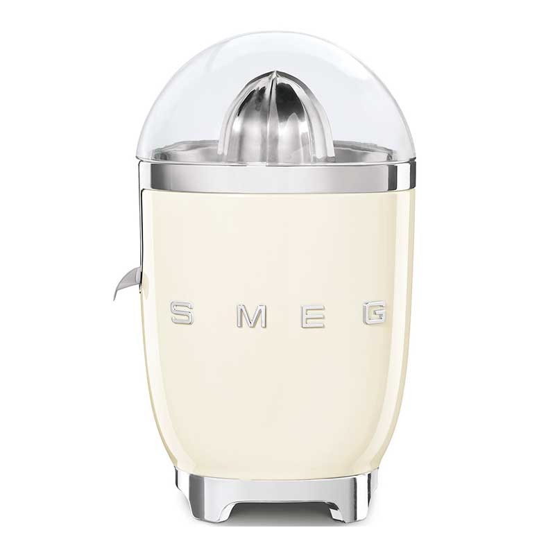 El exprimidor de cítricos CJF11 combina un diseño elegante y un rendimiento superior. Prepárate un delicioso zumo de frutas en un instante. El exprimidor de cítricos Smeg está equipado con un potente motor de 70W con un sensor on-off integrado, completado por un colector de zumo y una lengua antigoteo que evita el desperdicio y mantiene limpia la cocina.