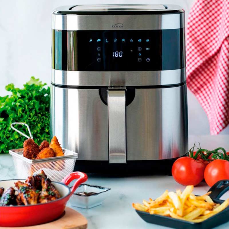 Freidora de aire sin aceite Ecofry, para freír, hornear, asar y calentar sin apenas utilizar aceite, para una cocina casera y saludable, de Lacor.