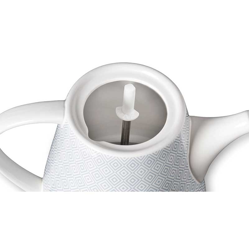 Hervidor eléctrico modelo GALA GREY con cuerpo cerámico resistente a altas temperaturas y calefactor de acero inoxidable oculto.