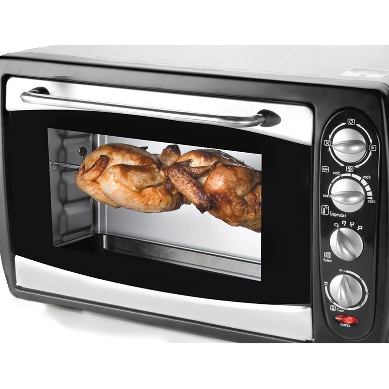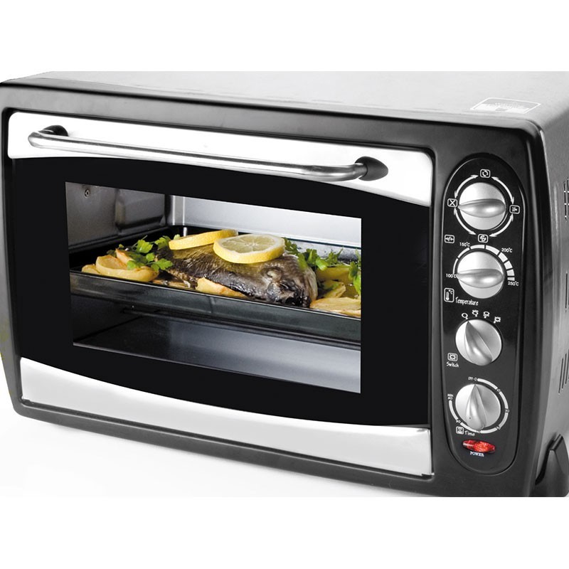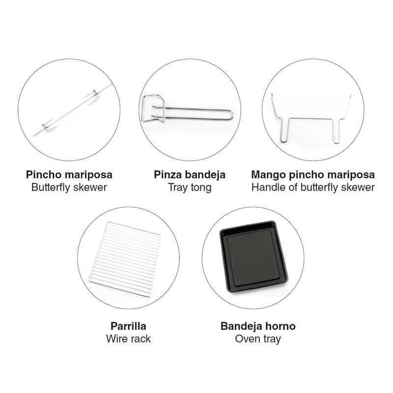 Este pequeño horno con función grill es ideal para colocarlo sobre la encimera en cocinas con poco espacio, pudiendo quitarlo con facilidad desenchufándolo de la corriente y guardarlo hasta nuevo uso. Además de sus grandes prestaciones también incluye los siguientes accesorios: