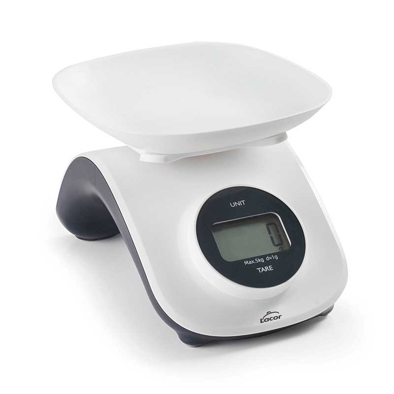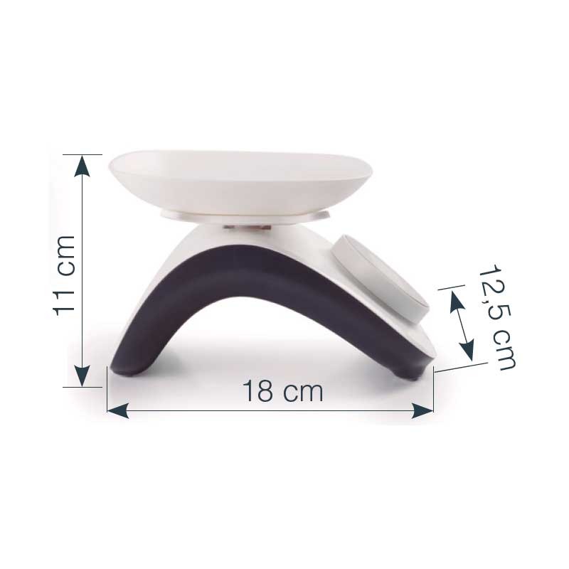 Báscula de cocina ligera y compacta modelo Eco con tecnología sin pilas ni batería. Dispone de botón giratorio para generar energía.