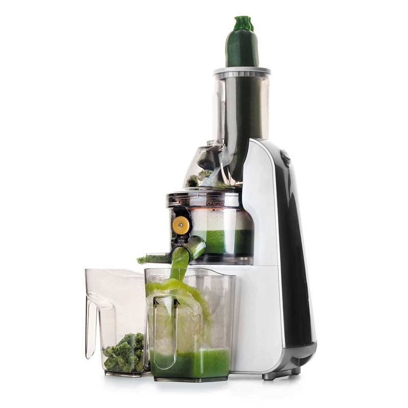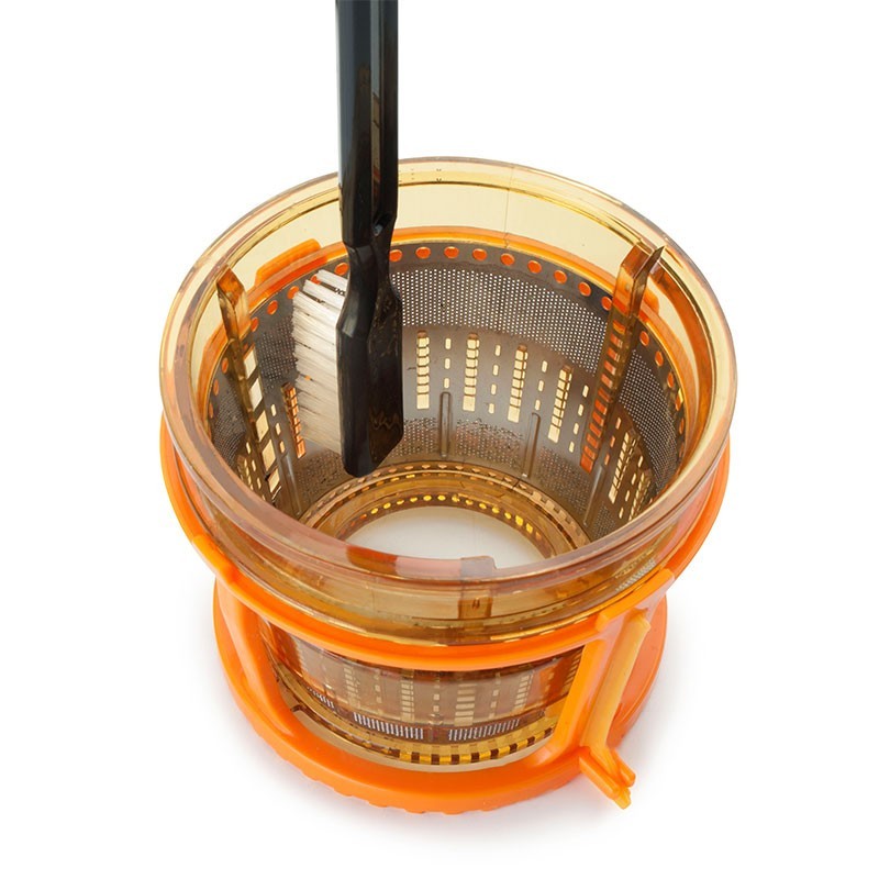 Con un diseño moderno e innovador, este exprimidor permite introducir los ingredientes enteros, acelerando el tiempo dedicado a la extracción de zumos. Además de una estructura completamente desmontable, el extractor incorpora un cepillo para acceder a los orificios del filtro y a los sitios más complicados, asegurando así su fácil limpieza.