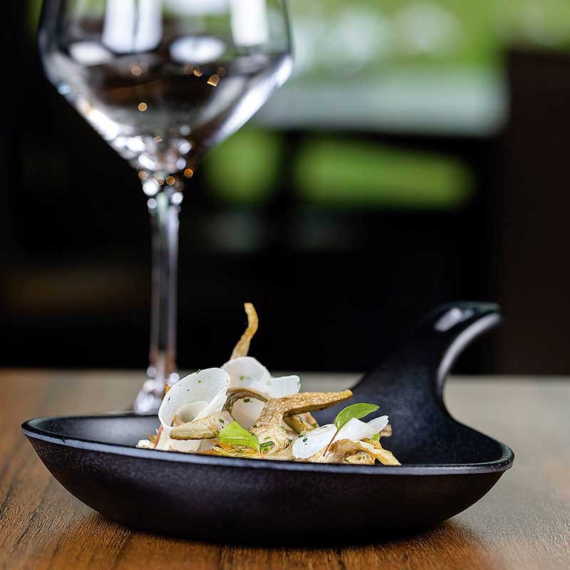 Mini sartén de resina modelo Magma con un aspecto natural parecido al hierro fundido. Ideal para servir y presentar los platos más exquisitos.