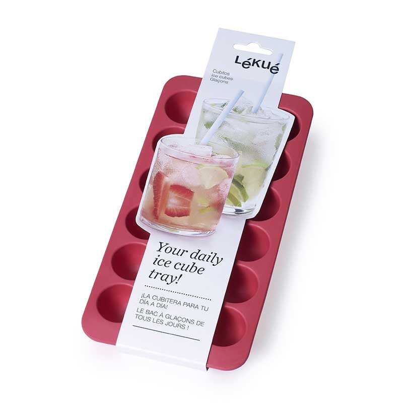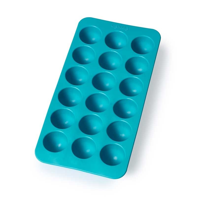 Cubitera de caucho flexible que facilita el desmoldado para hacer 18 cubitos de hielo con forma de semiesferas.