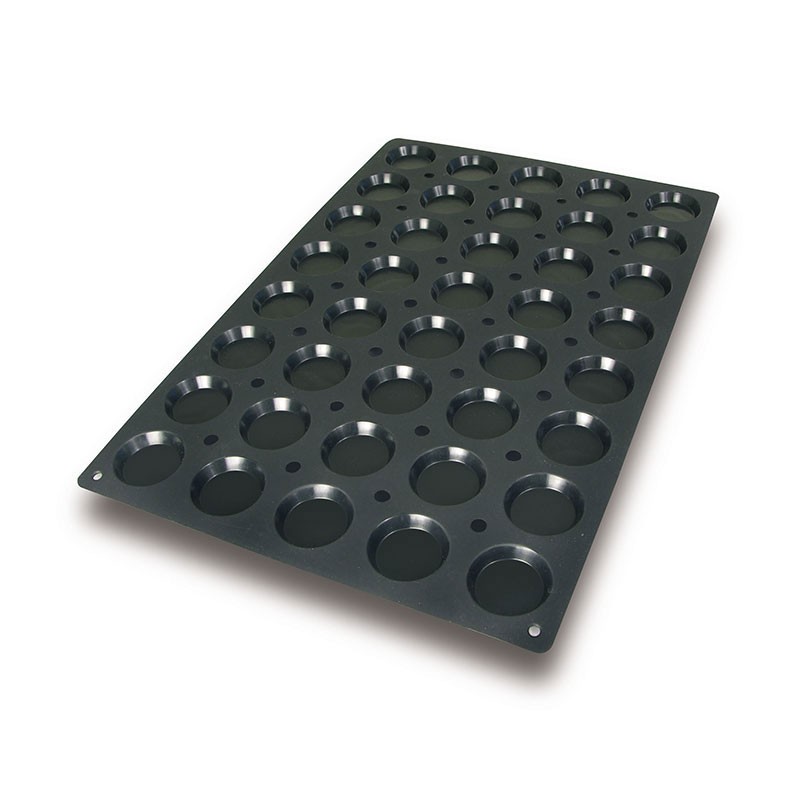 Molde florentinas para repostería con 40 cavidades de Ø60x11 mm y 25 ml cada una fabricado en silicona de la serie Black.