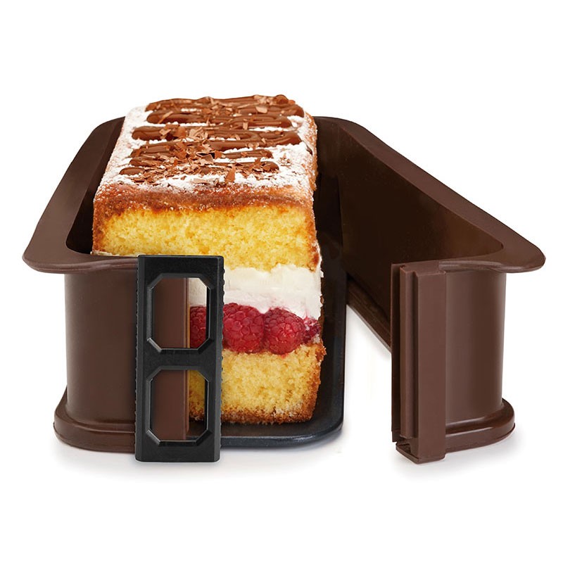 Molde desmontable para repostería de 29x13 cm y 7 cm de alto fabricado en silicona con base de cristal antiadherente y antirralladuras.