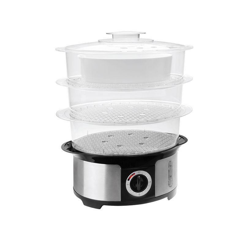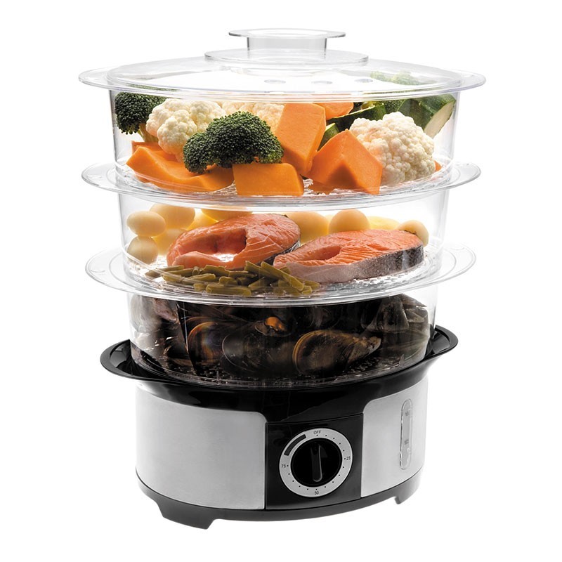 El cocedor de vapor eléctrico que te proponemos aquí, dispone de 3 cestas que te permitirán preparar hasta 3 platos a la vez. Programa la duración de la cocción y del resto se encargará este pequeño y práctico electrodoméstico.