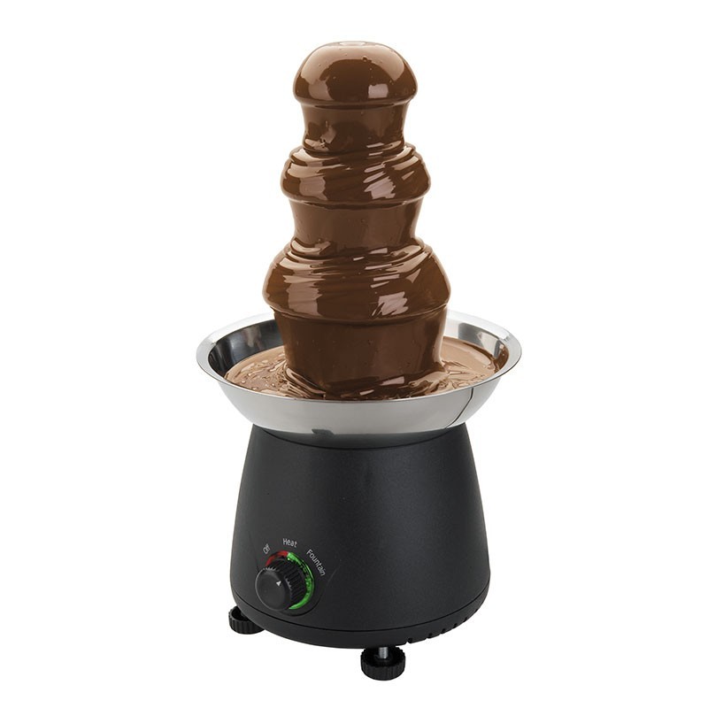 La fuente de chocolate genera una deliciosa cascada de chocolate fundido que podrás disfrutar sólo o combinado con dulces o frutas haciendo tus postres y sobremesas mucho más divertidos.