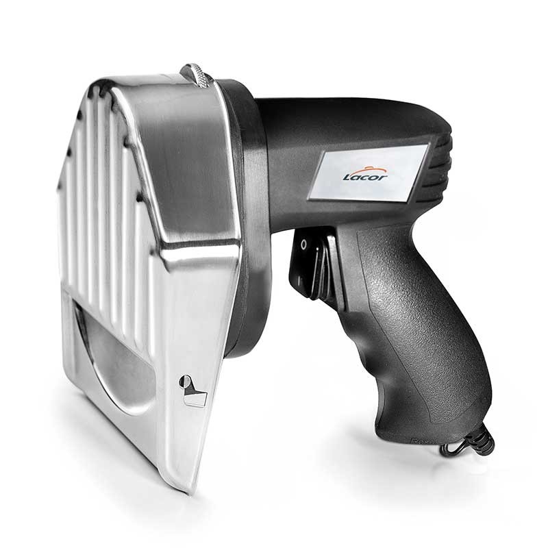 Cortador eléctrico profesional para kebab con regulador del grosor de corte, cuchillas de acero inoxidable y mango ergonómico. Incluye 2 cuchillas.