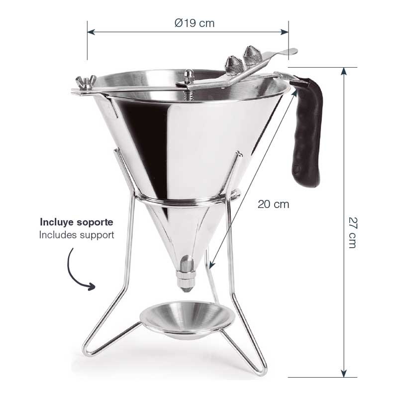 Embudo dosificador de acero inoxidable ideal para rellenar o decorar platos con salsas y cremas calientes y frías.