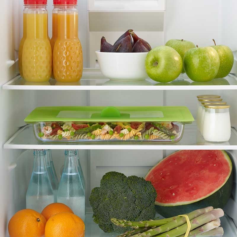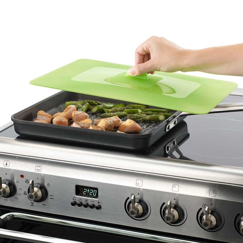 Tapa de succión de 35x25 cm fabricada 100% en silicona platinum para usar durante el cocinado o para cubrir recipientes y conservarlos sin perder su sabor o aroma.