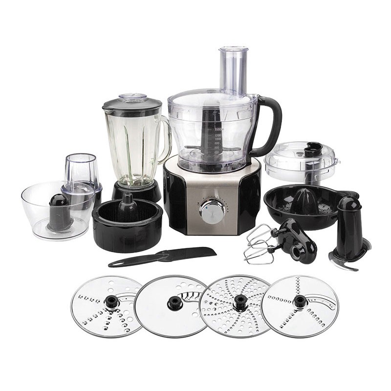 Robot de cocina multifunción con 800 W de potencia, 10 velocidades, 8 funciones diferentes, 1,5 litros de capacidad y accesorios incluidos.