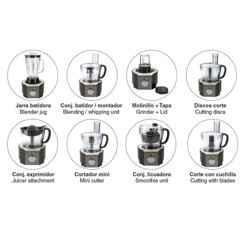 Te presentamos el robot multifunción para cocina, un solo cuerpo central con varios accesorios que reúne hasta 8 funciones de varios electrodomésticos diferentes para hacer más fáciles tus tareas en la cocina.