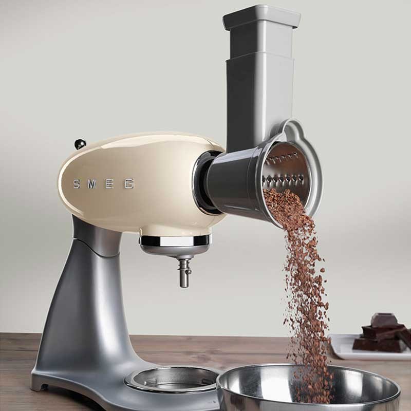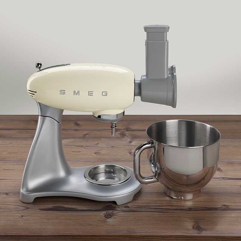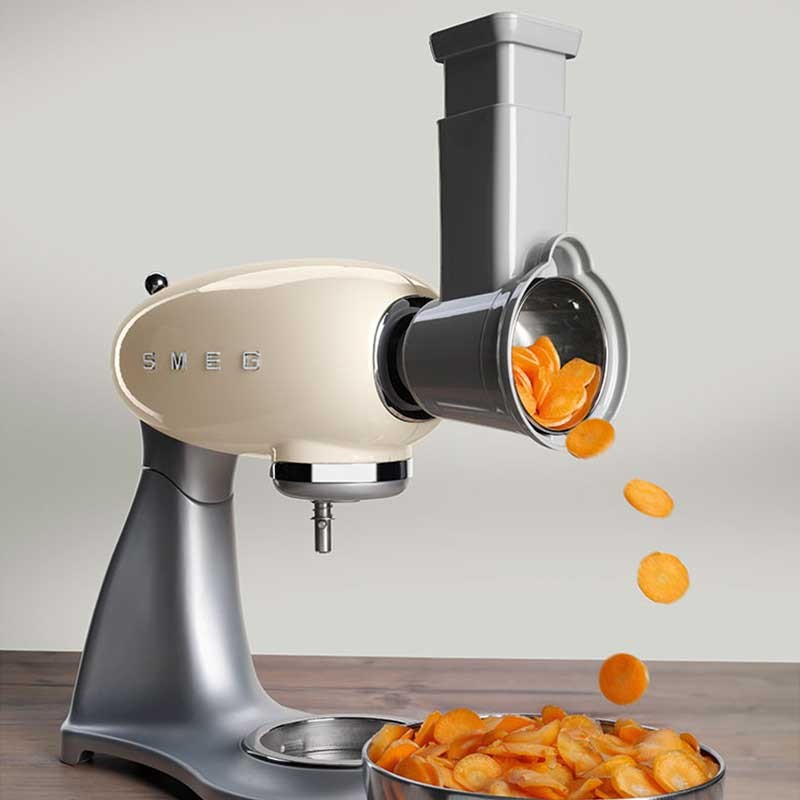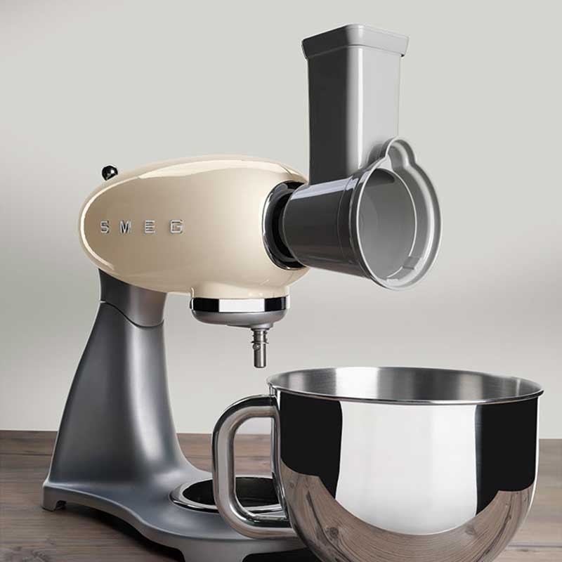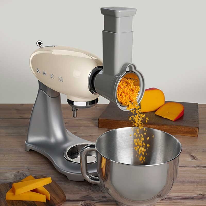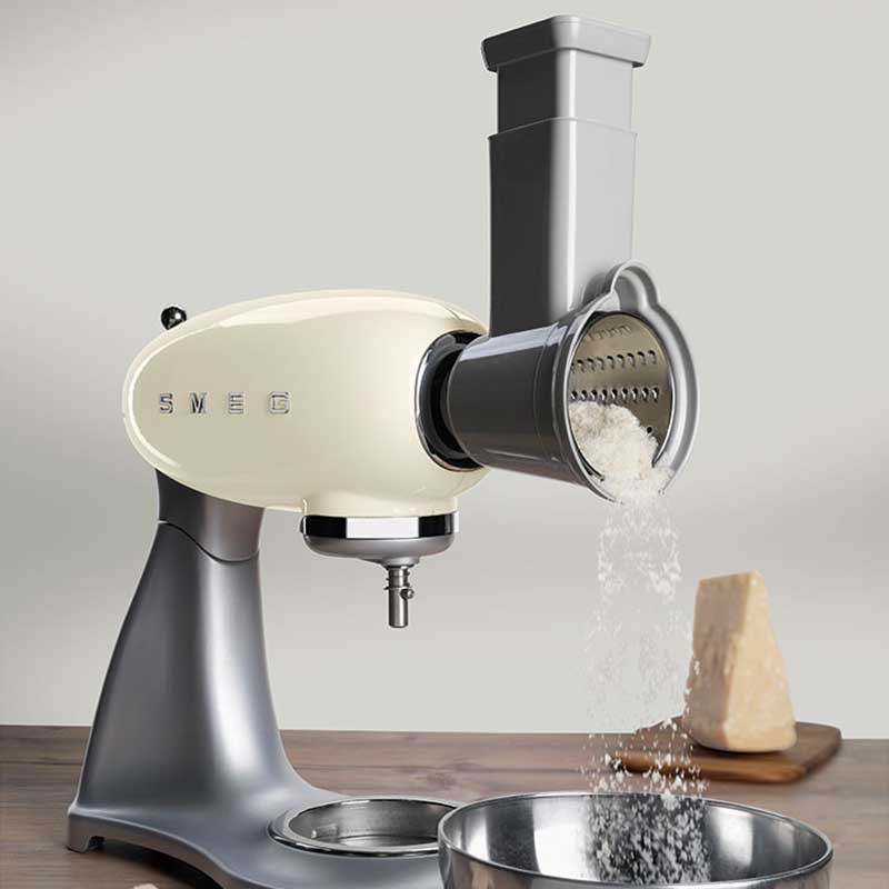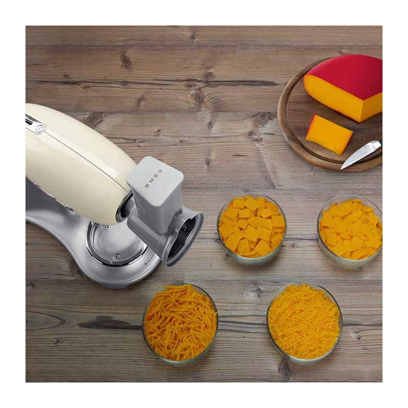 Pack de 4 accesorios ralladores y laminadores compatibles con los robots de cocina Smeg 50's Style modelo SMF02 y SMF03.