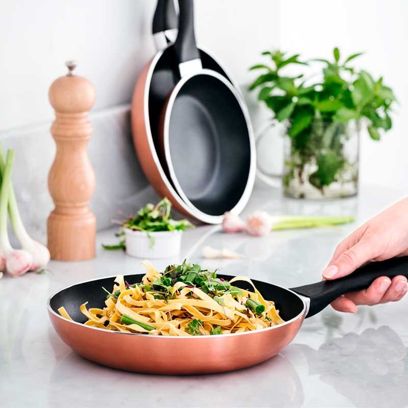 Sartén de aluminio modelo GARINOX con recubrimiento antiadherente bicapa reforzado, resistente a arañazos y ralladuras.
