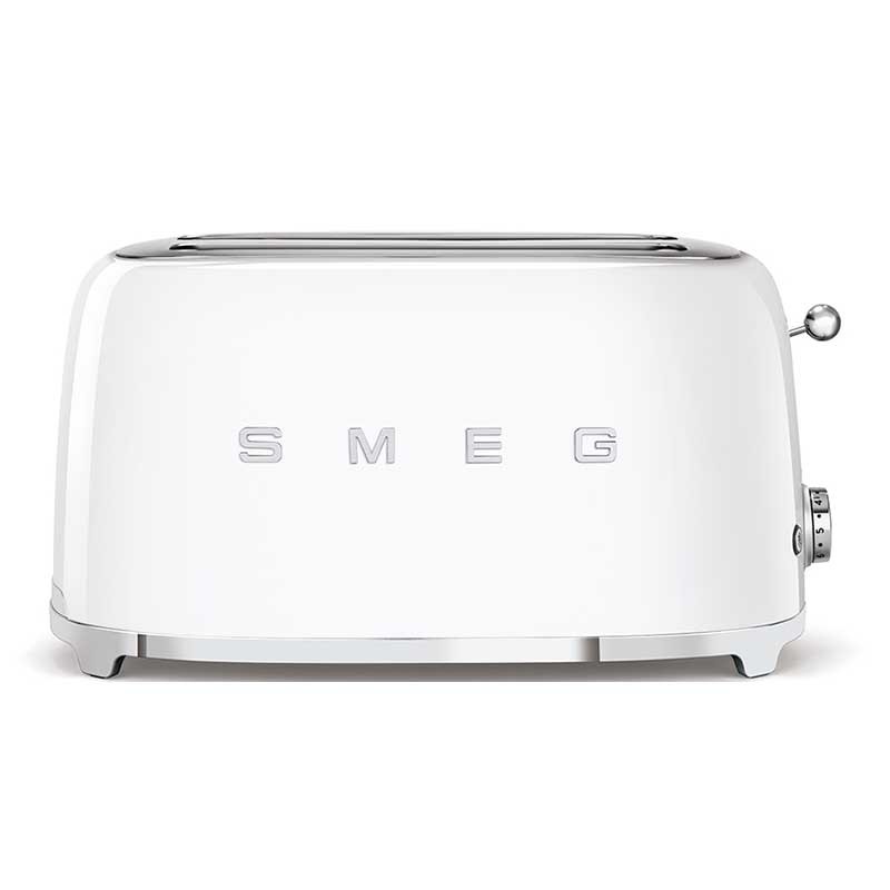 Tostadora Smeg 50's Style con cuerpo en acero inoxidable color blanco brillo con 6 niveles de calentamiento y 2 ranuras para 4 tostadas.