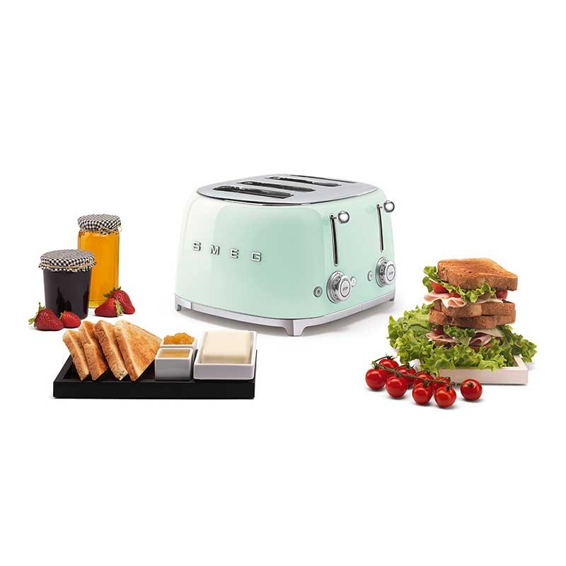 La gama de tostadoras Smeg 50's Style (diseño inspirado en los años 50) combinan a la perfección ergonomía, funcionalidad y un exclusivo estilo. Para el desayuno o para picar entre horas, para la comida, merienda o para la cena, cuando te enamoras de las tostadoras 50's Style de Smeg será difícil encontrar un motivo para no usarlas.
