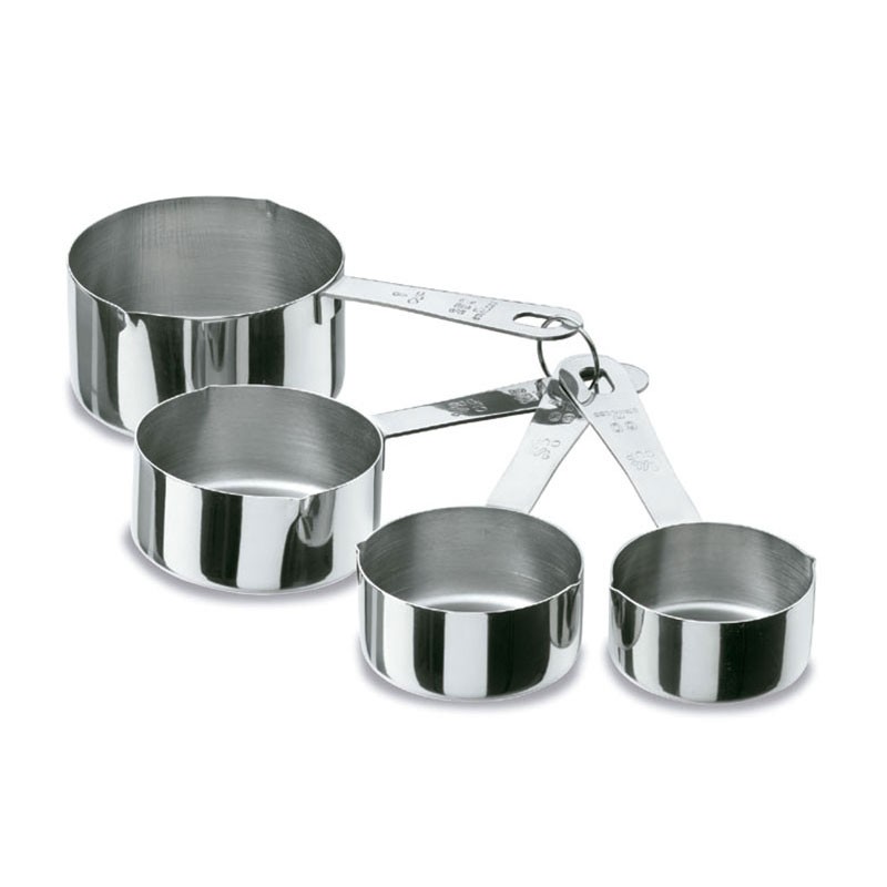 Ampliar Juego de 4 cazos para medidas de 60 / 80 / 125 / 250 ml fabricados en acero inoxidable 18% Cromo de alta calidad y resistencia a la corrosión.