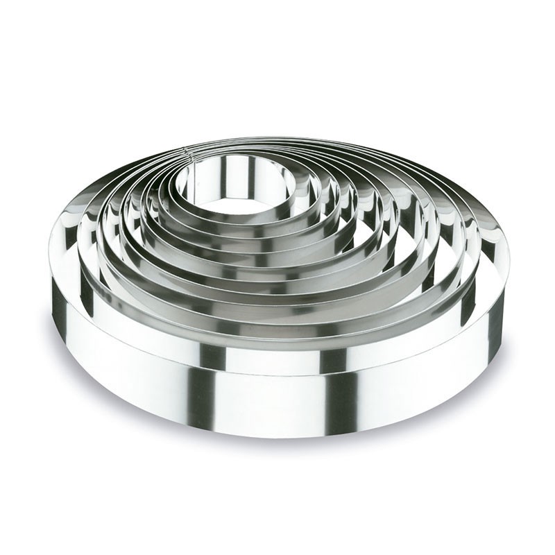 Ampliar Aro redondo de acero inoxidable de 3,5 cm de altura para emplatar guarniciones, ensaladas, postres o montar platos como un steak tartar o similares. Disponible en 2 diámetros.