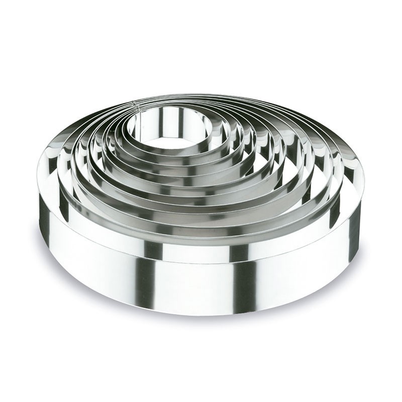 Ampliar Aro redondo de acero inoxidable de 4 cm de altura para emplatar guarniciones, ensaladas, postres o montar platos como un steak tartar o similares. Disponible en varios diámetros.